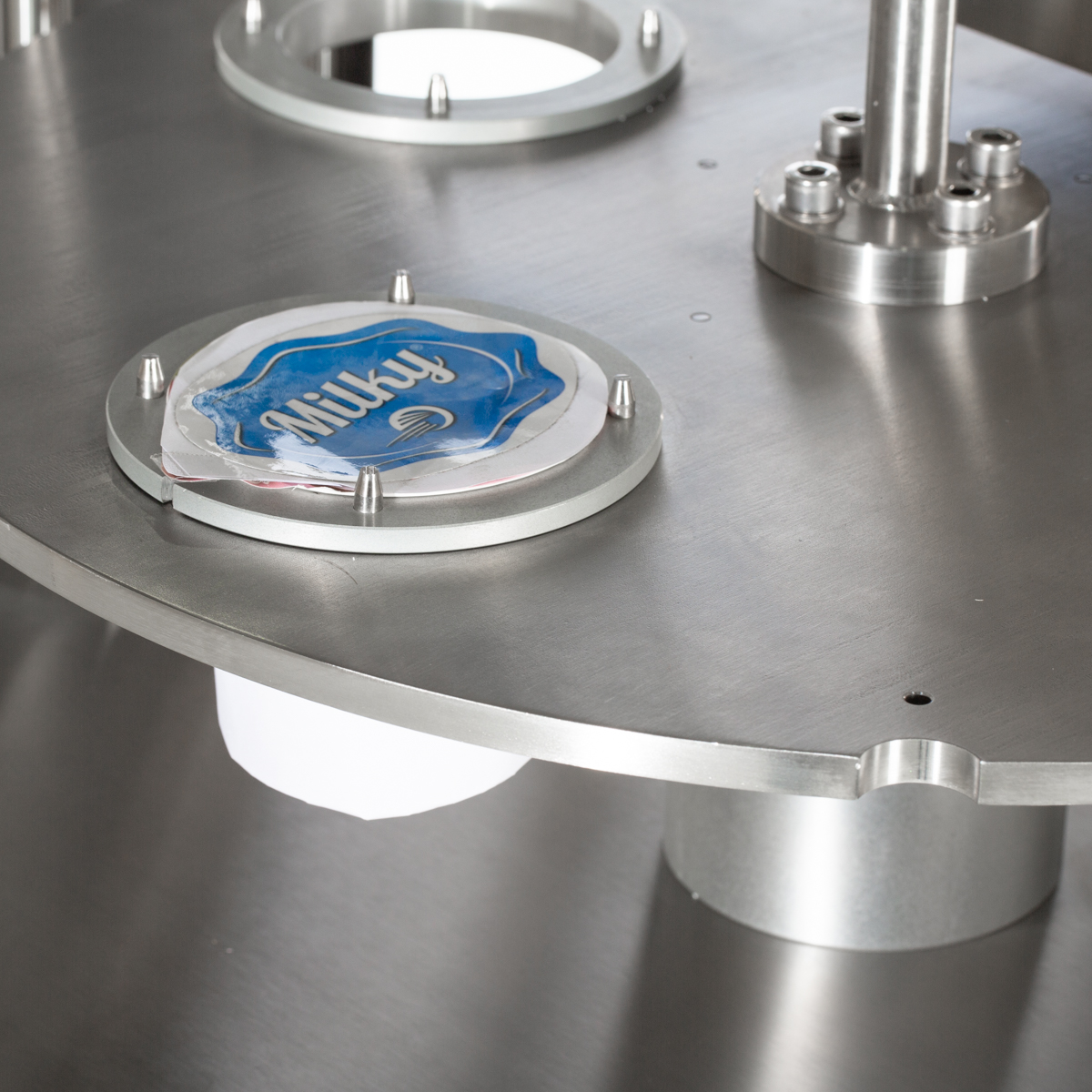 Milky Becherverschlussmaschine BP 600 mit automatischen Drehtisch