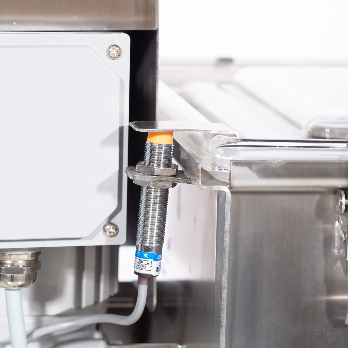 Der automatische Notausschalter ist am Motor angebracht und wird nur bei Abnehmen des Sichtdeckel aktiviert. Das Rührwerk aus Edelstahl stoppt sofort.
