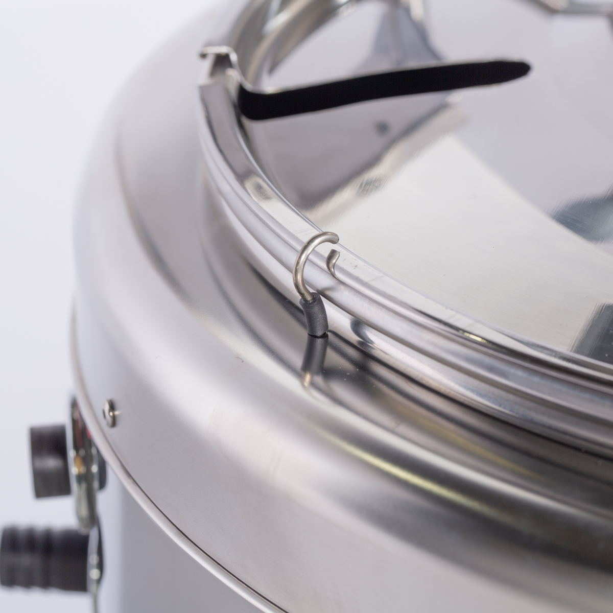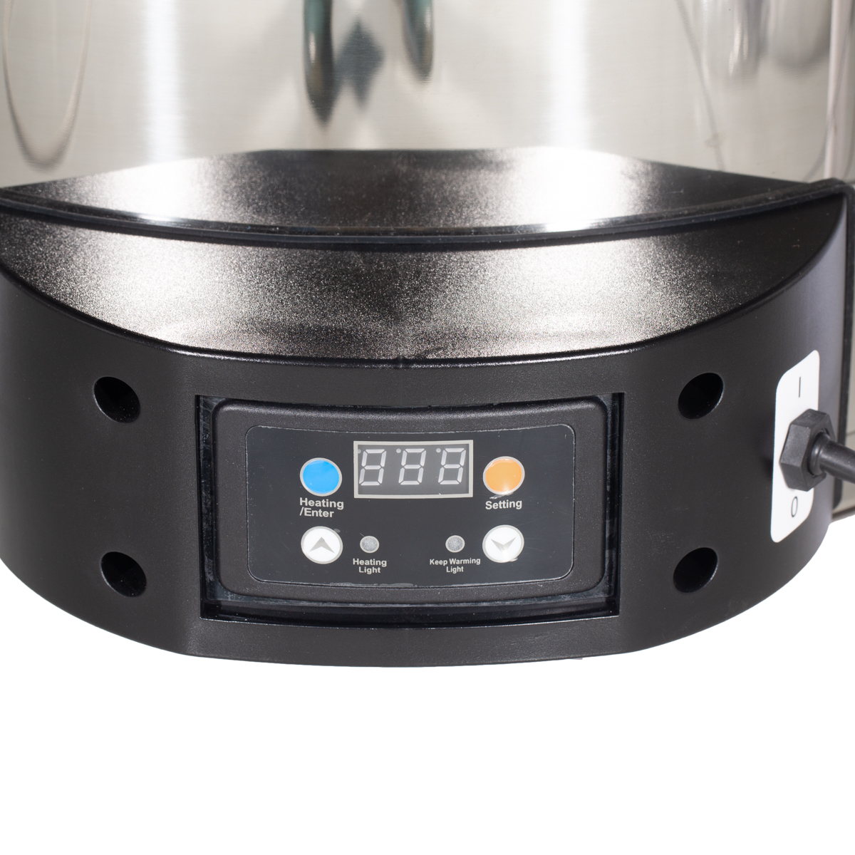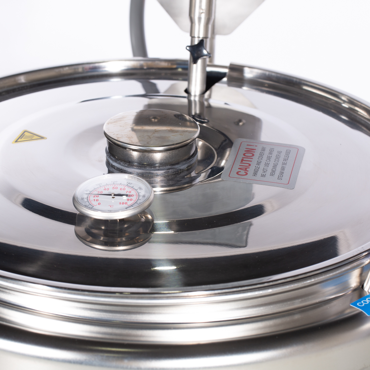 Die eingebaute Heizspirale kann Ihr Produkt auf bis zu 92 °C in der 230V Variante erhitzen. Durch das innovative Bedienfeld können Zeit und Temperatur individuell eingestellt werden.