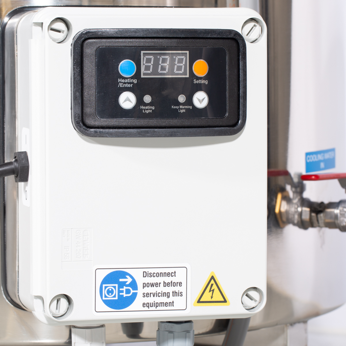 Der Milky FJ 15 Mini Pasteurisator, Käse- und Joghurtkessel ist der kleine Alleskönner unter den Mehrzweckkesseln. Weltweit ist dies der einzige dreiwandige Kessel in dieser Größe. Er kann nicht nur Milch, Obst, Fruchtsäfte und andere Flüssigkeiten pasteurisieren, sondern erreicht auch die für die Herstellung von Käse und Joghurt notwendigen Temperaturen. Die eingebaute Heizspirale kann Ihr Medium auf bis zu 92°C erhitzen. Durch das innovative Bedienfeld können Zeit und Temperatur individuell eingestellt werden. Zur Vermeidung von Fehlfunktionen ist der Kessel vor jeder Inbetriebnahme mit Wasser zu füllen. Im Falle einer Fehlfunktion setzen Sie das Gerät mittels Reset-Schalter am Boden zurück oder wenden Sie sich an einen lizenzierten Händler.
