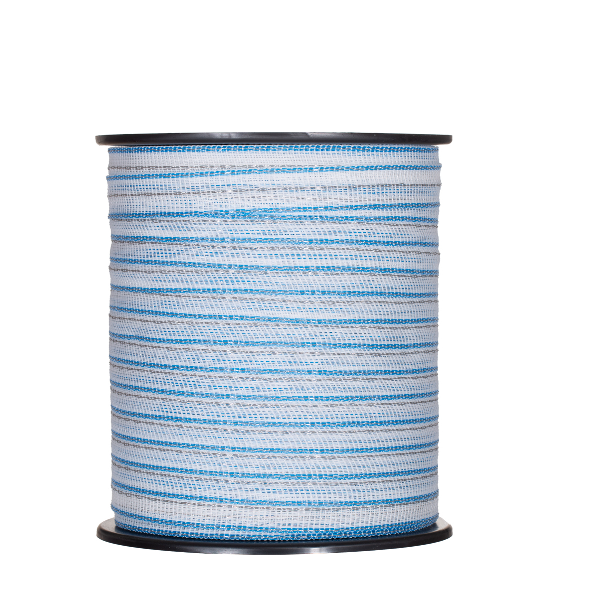 Breite: 12 mm Länge: 200 m Farbe: Blau/Weiß Max. Zaunlänge: 25.500 m Widerstand: 0.078 Ω Bruchlast: 65 kg